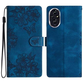 For Honor 200 Cherry Blossom Butterfly Skin Feel Embossed PU Phone Case(Blue)
