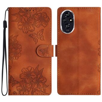 For Honor 200 Cherry Blossom Butterfly Skin Feel Embossed PU Phone Case(Brown)