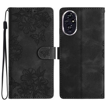 For Honor 200 Cherry Blossom Butterfly Skin Feel Embossed PU Phone Case(Black)