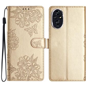 For Honor 200 Cherry Blossom Butterfly Skin Feel Embossed PU Phone Case(Gold)