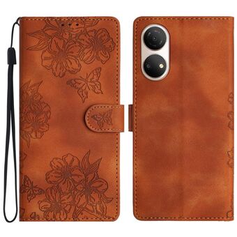 For Honor X7 Cherry Blossom Butterfly Skin Feel Embossed PU Phone Case(Brown)
