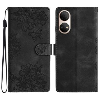 For Honor 90 Cherry Blossom Butterfly Skin Feel Embossed PU Phone Case(Black)