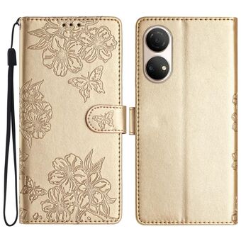 For Honor 90 Cherry Blossom Butterfly Skin Feel Embossed PU Phone Case(Gold)