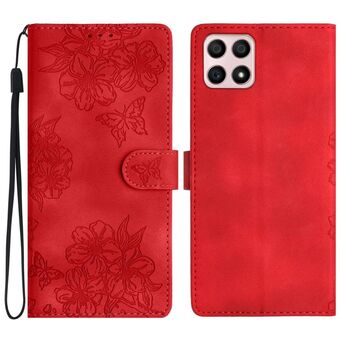 For Honor X8 / X30i Cherry Blossom Butterfly Skin Feel Embossed PU Phone Case(Red)