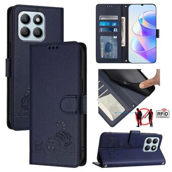 For Honor X8b 4G Global Cat Rat Embossed Pattern RFID Leather Phone Case with Lanyard(Blue)