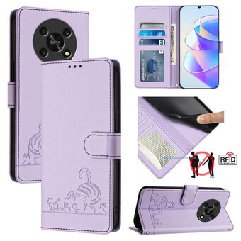 For Honor X30 5G/X9 5G/X9 4G Cat Rat Embossed Pattern RFID Leather Phone Case with Lanyard(Purple)