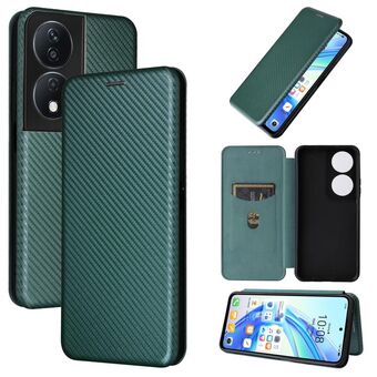 For Honor X7b Carbon Fiber Texture Flip Leather Phone Case(Green)