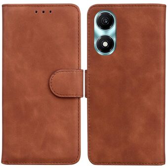 For Honor X6a Skin Feel Pure Color Flip Leather Phone Case(Brown)