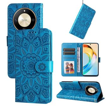 For Honor X50 Embossed Sunflower Leather Phone Case(Blue)