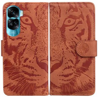 For Honor 90 Lite Tiger Embossing Pattern Flip Leather Phone Case(Brown)