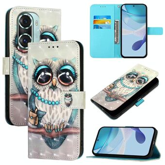 For Honor 60 Pro 3D Painting Horizontal Flip Leather Phone Case(Grey Owl)
