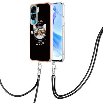 For Honor 90 Lite 5G Electroplating Dual-side IMD Phone Case with Lanyard(Leopard Print)