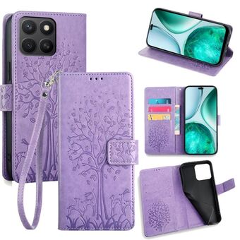 For Honor X8c 4G Tree & Deer Embossed Leather Phone Case(Purple)