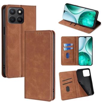 For Honor X8c 4G RFID Anti-theft Brush Magnetic Leather Phone Case(Brown)