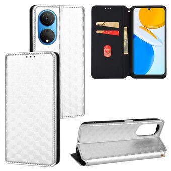 For Honor X7a Cubic Grid Texture Flip Leather Phone Case(Silver)