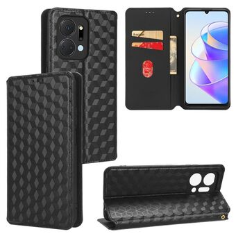 For Honor X7a Cubic Grid Texture Flip Leather Phone Case(Black)