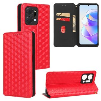 For Honor X7a Cubic Grid Texture Flip Leather Phone Case(Red)