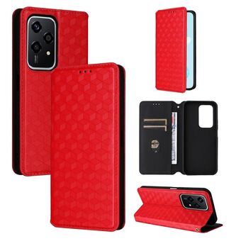 For Honor 200 Lite 5G Global Cubic Grid Texture Flip Leather Phone Case(Red)