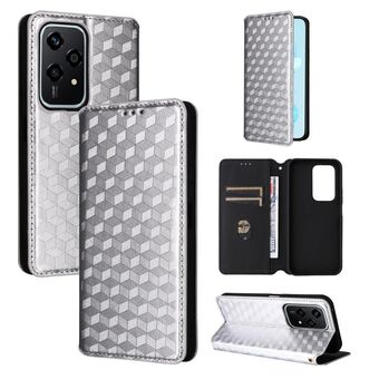 For Honor 200 Lite 5G Global Cubic Grid Texture Flip Leather Phone Case(Silver)