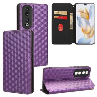 For Honor 90 Cubic Grid Texture Flip Leather Phone Case(Purple)