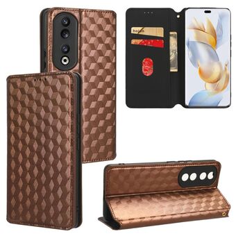 For Honor 90 Cubic Grid Texture Flip Leather Phone Case(Brown)