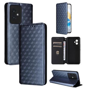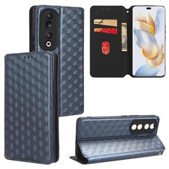 For Honor 90 Cubic Grid Texture Flip Leather Phone Case(Blue)
