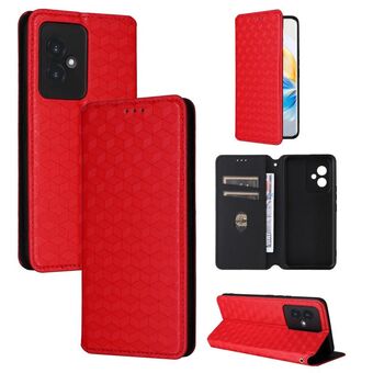 For Honor 90 Cubic Grid Texture Flip Leather Phone Case(Red)