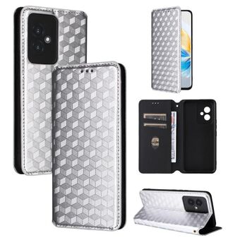 For Honor 90 Cubic Grid Texture Flip Leather Phone Case(Silver)