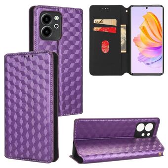 For Honor 80 SE 5G Cubic Grid Texture Flip Leather Phone Case(Purple)