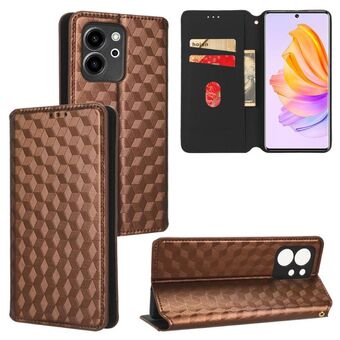 For Honor 80 SE 5G Cubic Grid Texture Flip Leather Phone Case(Brown)
