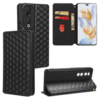 For Honor 90 Pro Cubic Grid Texture Flip Leather Phone Case(Black)