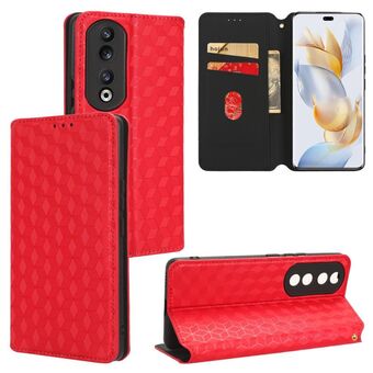 For Honor 90 Pro Cubic Grid Texture Flip Leather Phone Case(Red)