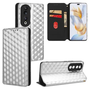 For Honor 90 Pro Cubic Grid Texture Flip Leather Phone Case(Silver)