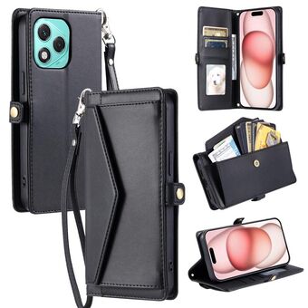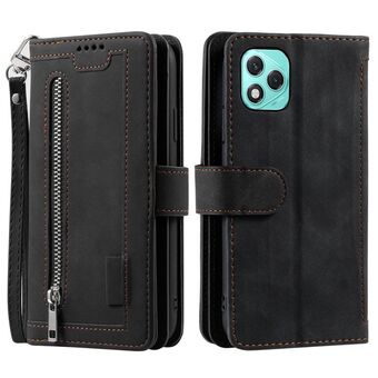 For Honor 400 Lite Nine Card Zipper Bag Leather Phone Case with Lanyard(Black)