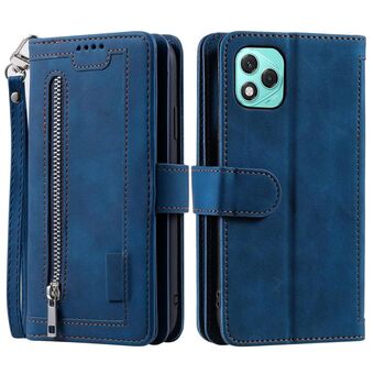 For Honor 400 Lite Global Nine Card Zipper Bag Leather Phone Case with Lanyard(Blue)