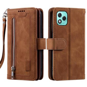 For Honor 400 Lite Global Nine Card Zipper Bag Leather Phone Case with Lanyard(Brown)