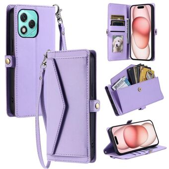 For Honor 400 Lite Global Wallet Multi-card Slot Leather Phone Case with Lanyard(Purple)