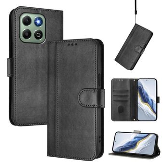 For Honor X6a / X6b Line Splicing Buckle Retro Leather Phone Case(Black)