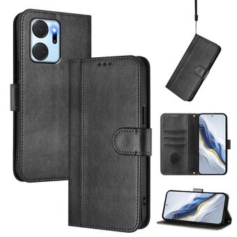 For Honor X7a / Honor Play7T Line Splicing Buckle Retro Leather Phone Case(Black)