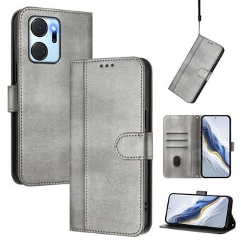 For Honor X6a / X6b Line Splicing Buckle Retro Leather Phone Case(Grey)