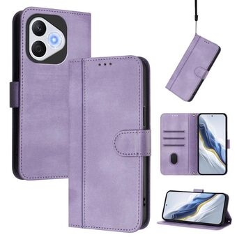 For Honor 400 Lite Line Splicing Buckle Retro Leather Phone Case(Purple)