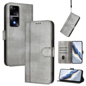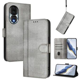 For Honor 80 Line Splicing Buckle Retro Leather Phone Case(Grey)