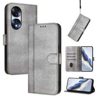 For Honor 70 Pro Line Splicing Buckle Retro Leather Phone Case(Grey)