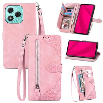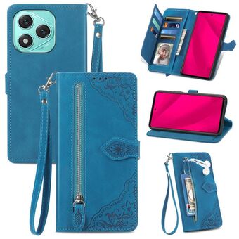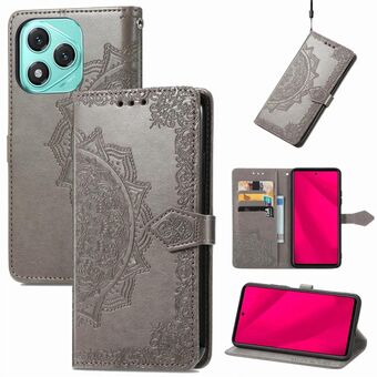 For Honor 50 SE Line Splicing Buckle Retro Leather Phone Case(Grey)