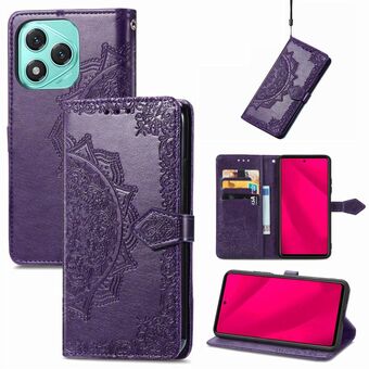 For Honor 50 Pro Line Splicing Buckle Retro Leather Phone Case(Purple)
