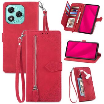 For Honor 50 SE Line Splicing Buckle Retro Leather Phone Case(Wine Red)