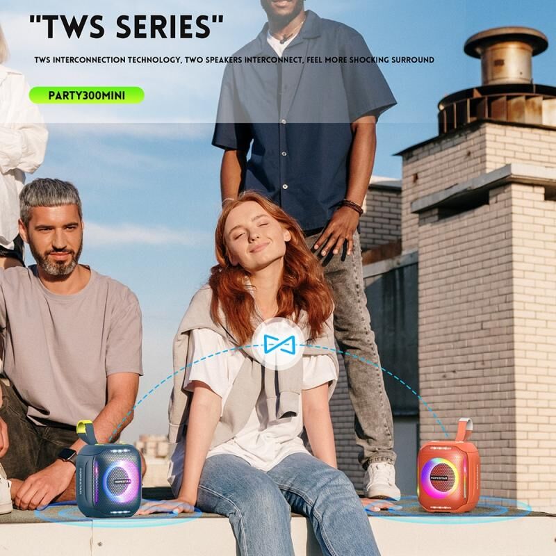 6. Ευφυής Έλεγχος: Το ηχείο Bluetooth διαθέτει ενσωματωμένο ευφυή πίνακα ελέγχου, ο οποίος μπορεί να ελεγχθεί εύκολα με ένα κουμπί. Εξοπλισμένο με καλώδιο USB για εύκολη πρόσβαση σε πηγές μουσικής, όπως τηλέφωνα, tablet κ.λπ.
