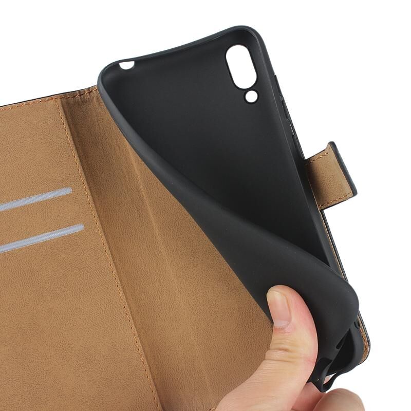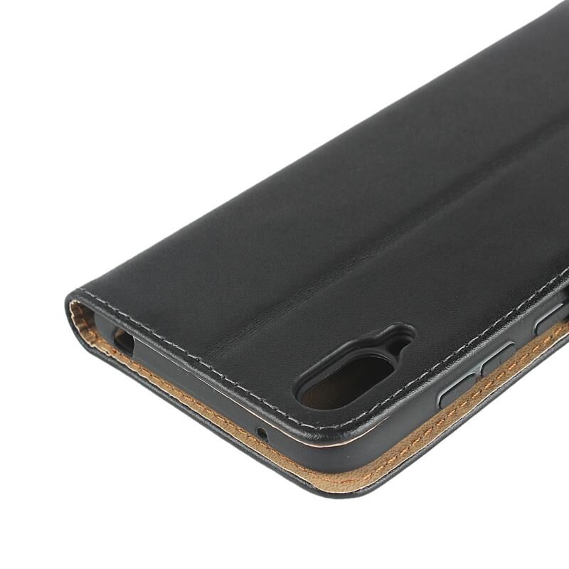 Οριζόντια δερμάτινη θήκη Flip για Huawei Y6 Pro (2019), με μαγνητική πόρπη & θήκη & υποδοχές καρτών & πορτοφόλι (Μαύρο)