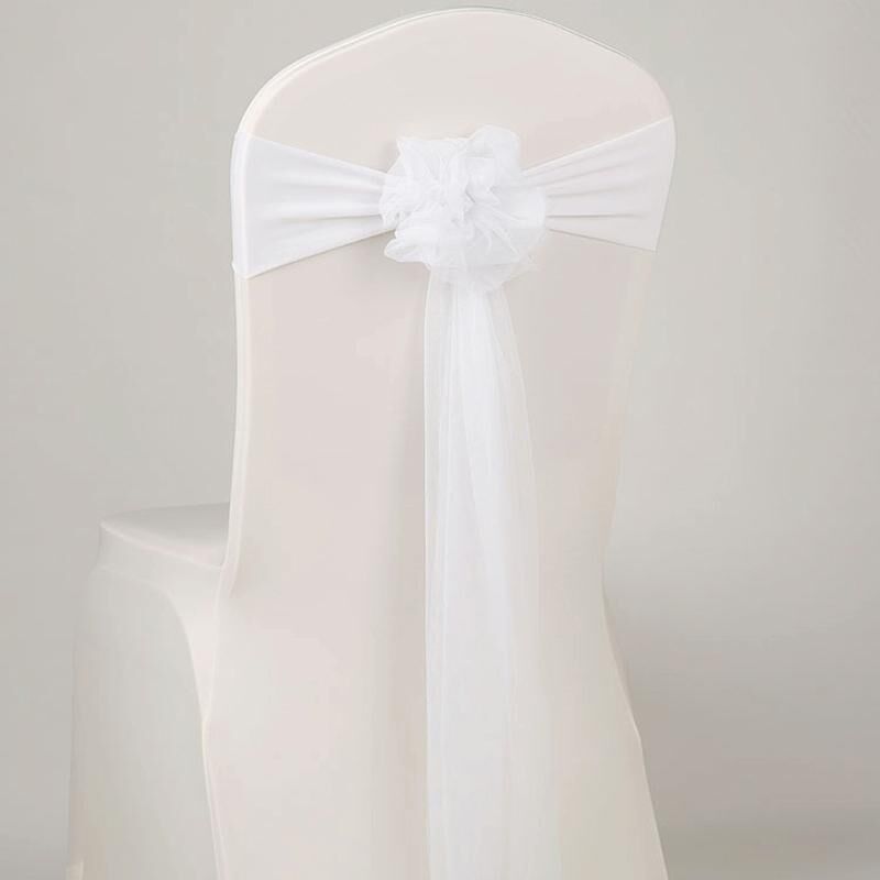 Ξενοδοχείο Γάμος Οργάντζα Δωρεάν γραβάτα καρέκλα πίσω Λουλούδι Νήματα καθίσματος Διακοσμήσεις Tulle καρέκλα πίσω τόξα (λευκό)
