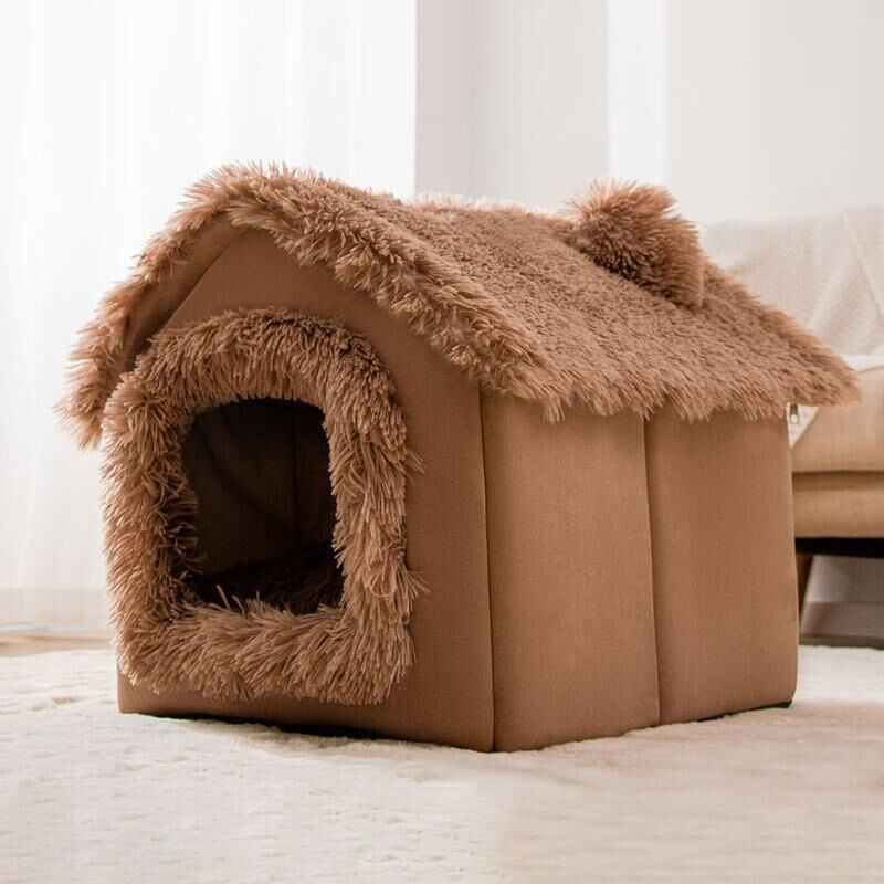 House Type Universal Removable and Washable Pet Dog Cat Bed Pet Supplies, Size:L(Brown Igloo)